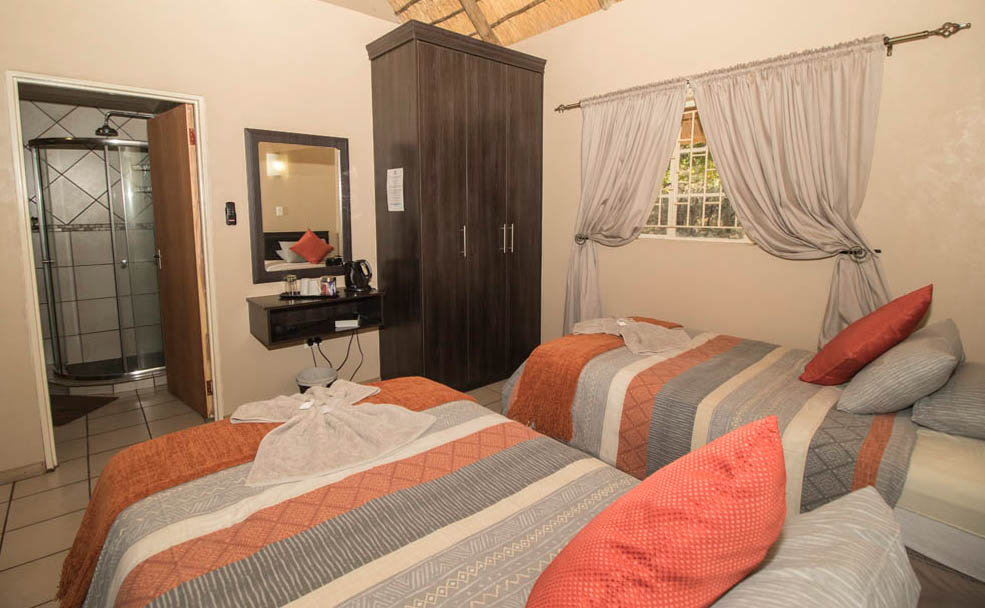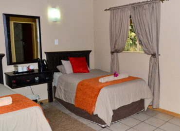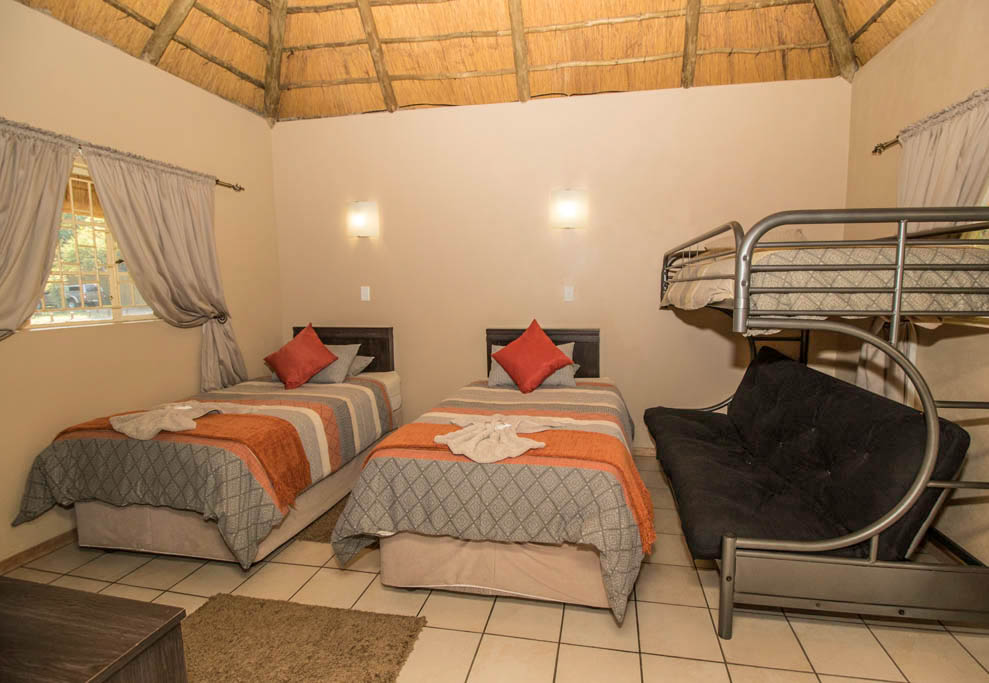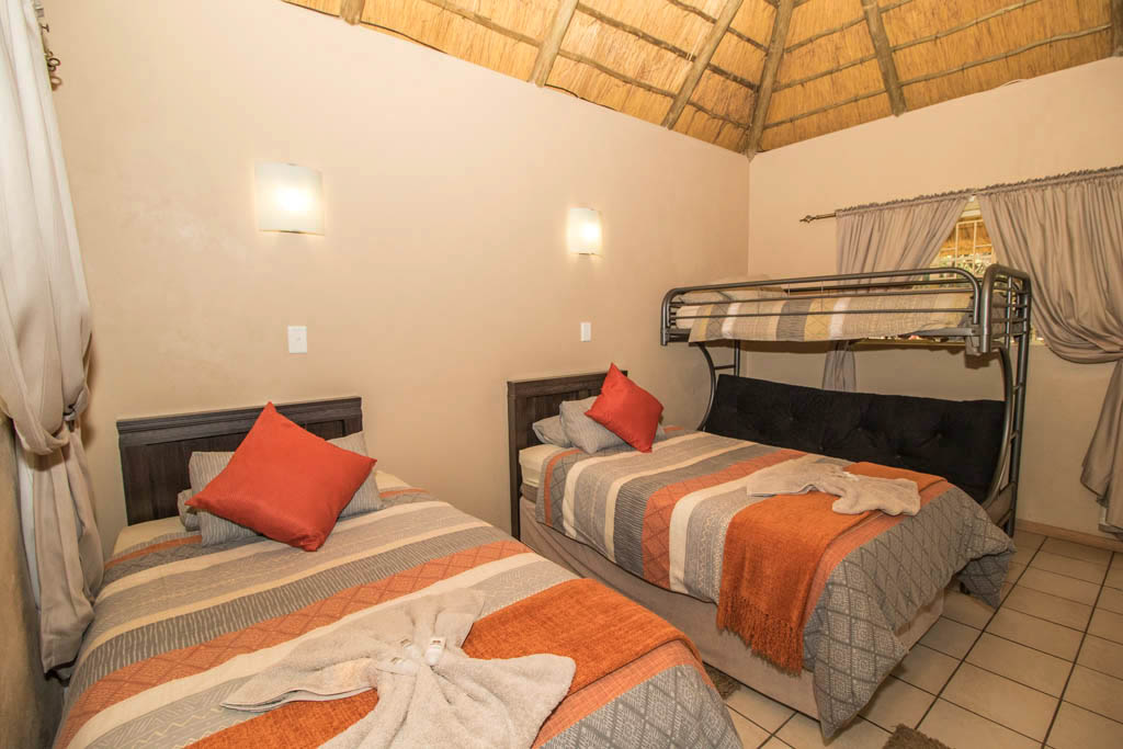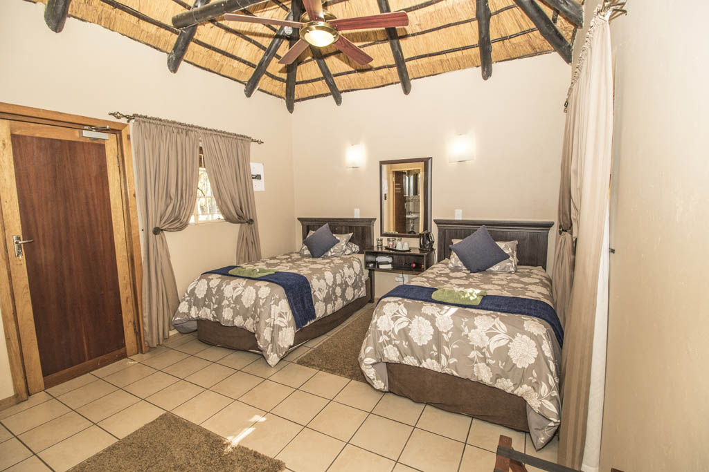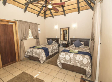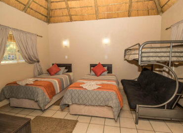 There are 2 family rooms at the main camp and they each accommodate a family of no more than 5. These rooms also have an en-suite bathroom and tea- and coffee-making facilities. A shared kitchen, bar, braai area, and a swimming pool are also part of the main camp.