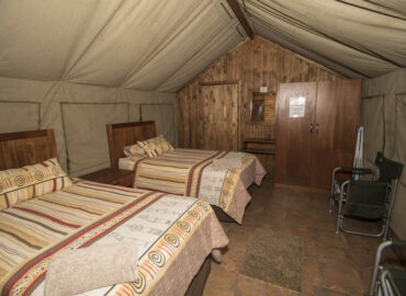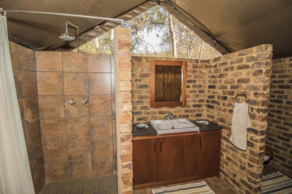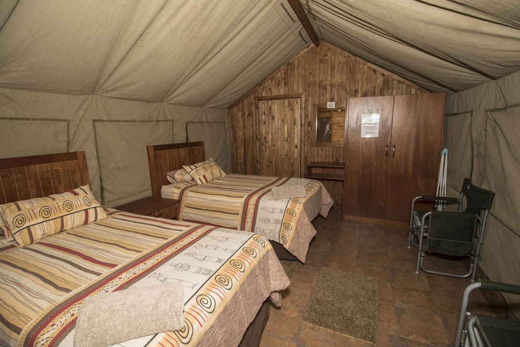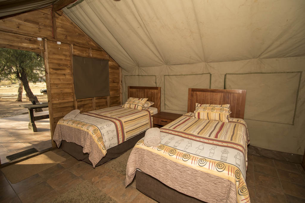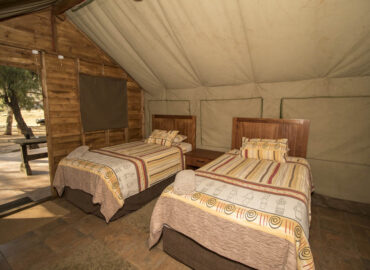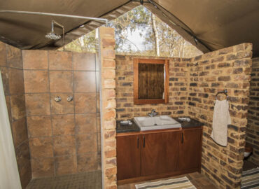 The 2 safari tents each have a private bathroom, braai area, and solar lighting. There is a donkey for hot water but no power. The kitchen is equipped with a gas and charcoal stove, and all the necessary crockery and cutlery. Both tents have access to a pool that is only filled in the summer. A river also flows past the units in summer. These units are approximately 3 km from the main camp.